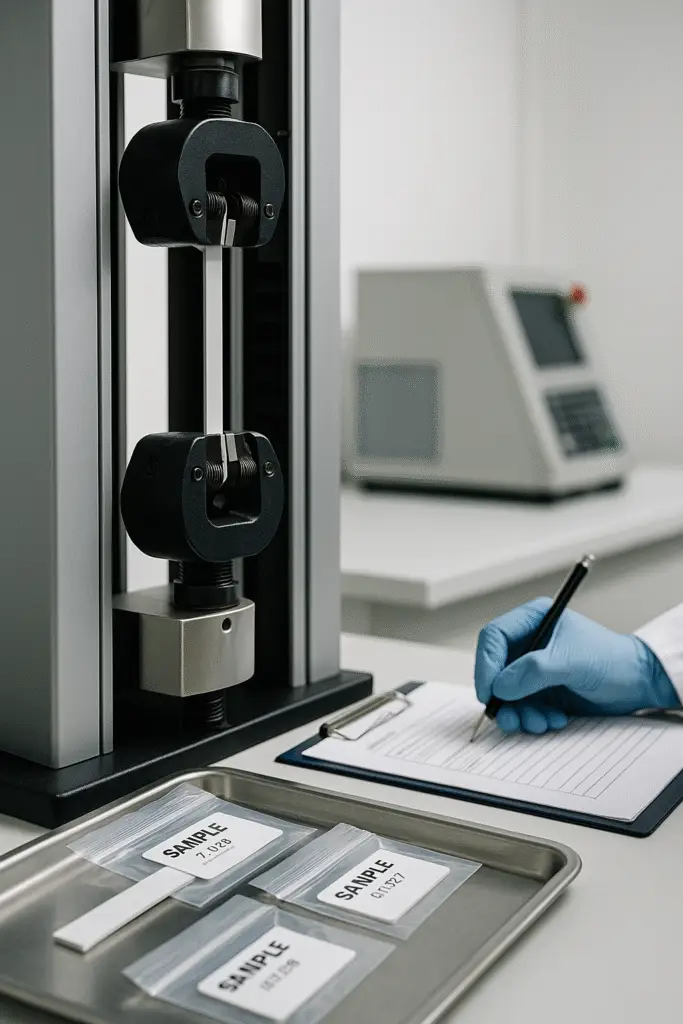 Métodos normalizados en plásticos y termoplásticos. Cada ensayo sigue procedimientos documentados, verificación de equipo y control de calidad interno.